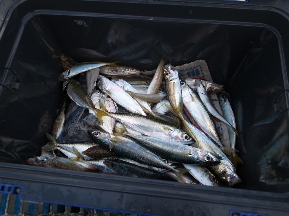3人の釣果。僕が釣ったのはサバとアジ以外で主にキス。あまりいいサイズが釣れなかったので小さいのもお持ち帰りしてしまったけどあまりメリット無かった気がする。あと、メゴチをメゴチと気付かずにハゼか何かかと思って扱っていたので危なかった。釣った時は何かが違う気がしてメゴチバサミ使っていて良かった。